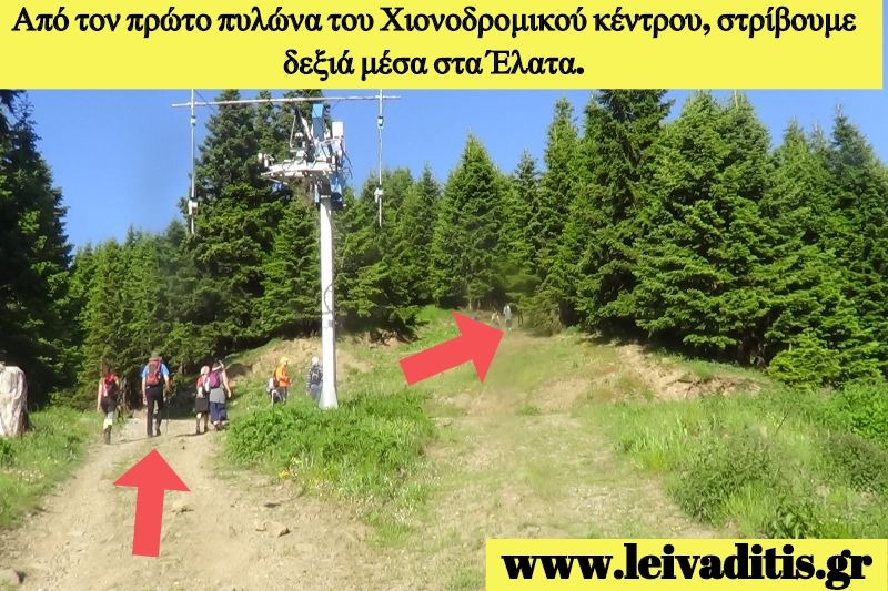 Συνεχίζει από το πρώτο πυλώνα του χιονοδρομικού κέντρου που υπάρχει στην περιοχή. Μόλις τον περάσετε πρέπει να στρίψετε δεξιά μέσα στα Έλατα για να βρείτε το μονοπάτι (Εικόνα 3)...