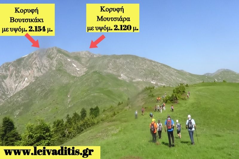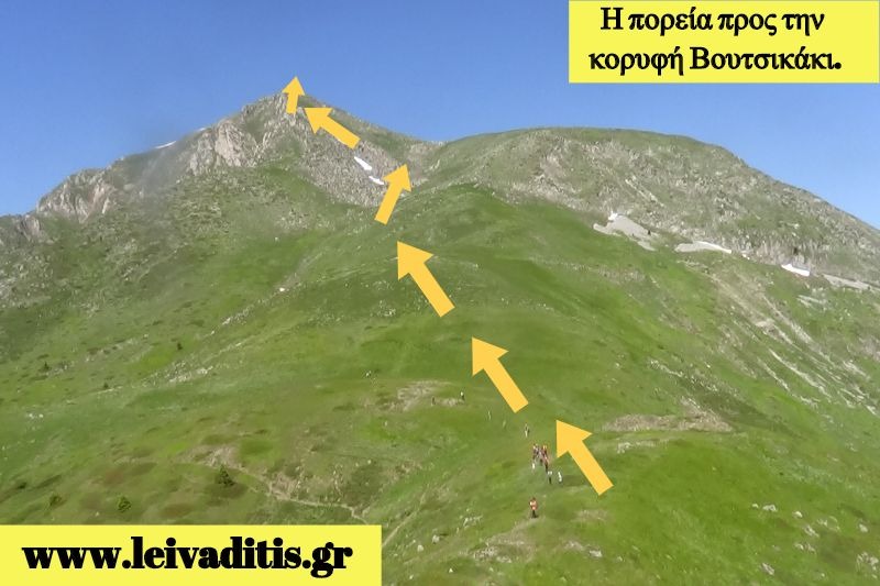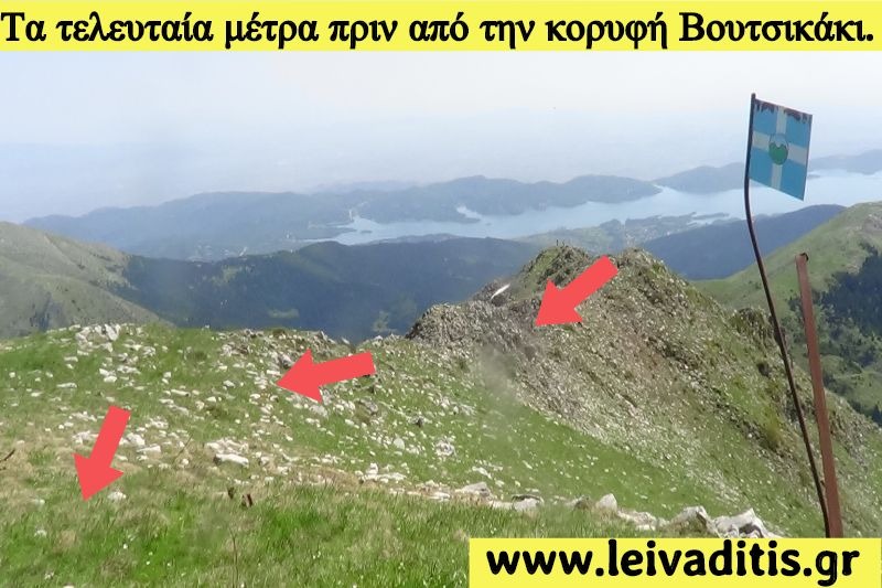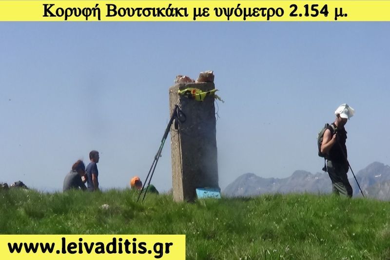 Από το λιβάδι μετά από 1 ώρα και 20 λεπτά θα φτάσετε στη κορυφή Βουτσικάκι σε υψόμετρο 2.154 μέτρων, αφού περπατήσετε άλλα 2 χιλιόμετρα. Προσοχή η κορυφή δεν είναι η πρώτη "μύτη" που φαίνεται αλλά θα δείτε ότι όταν την πλησιάσετε θα πρέπει αν περπατήσετε πάνω σε μία κόψη και για 200 περ'ιπου μέτρα πριν φτάσετε στην κορυφή η οποία έχει και κεραία για vhf (Εικόνα 11)...