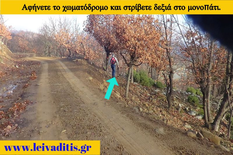 Αφού ετοιμαστείτε λοιπόν, ξεκινάτε το περπάτημά σας πάνω στον αγροτικό δρόμο (χωρίς να περάσετε τη γέφυρα) για περίπου 800 μέτρα, οπότε θα δείτε κόκκινο βελάκι που σας κατευθύνει να στρίψετε δεξιά για να βρείτε το μονοπάτι (Εικόνα 1)...
