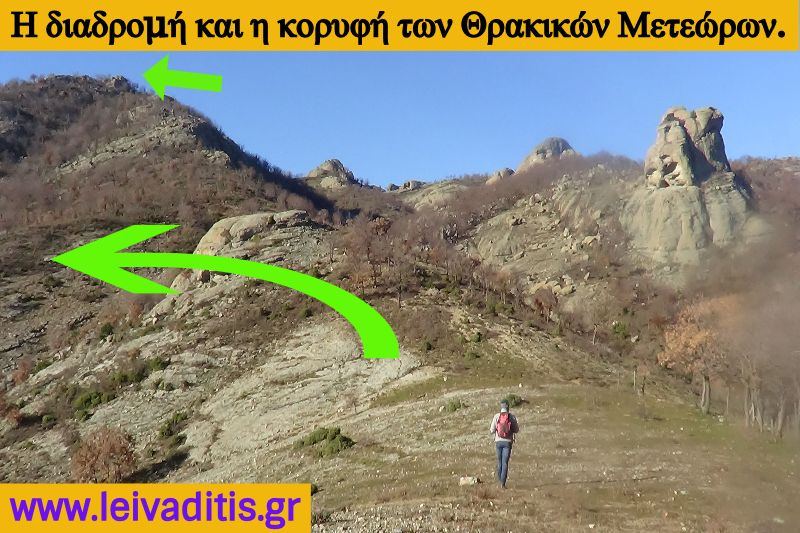 Μετά από 1,3 χλμ περίπου 40 λεπτά περπατήματος φτάνετε στο ποληπόθητο στόχο σας για τη σημερινή σας περιπέτεια που δεν είναι άλλος από την ανάβαση στην κορυφή των Θρακικών Μετεώρων σε υψόμετρο 560 μ. (Εικόνα 9)...
