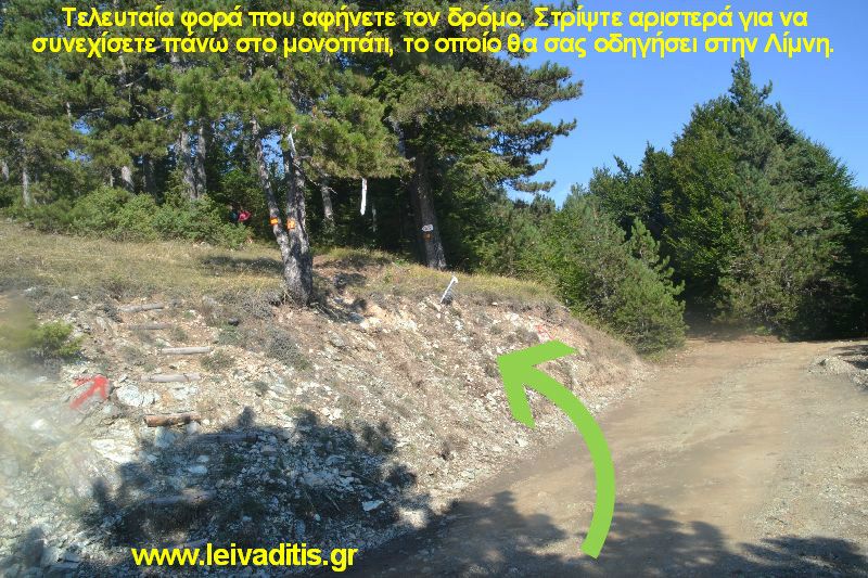 Αφού διανύσετε λοιπόν και αυτό το 1,5 χιλιόμετρο ξαναβγαίνετε σε αγροτικό δρόμο και συνεχίζετε την πορεία σας ευθεία (δεξιά). Μετά από 300 μετρα φτάνετε στην "θέση Πεύκος" οπότε και στρίβετε για τελευταία φορά αριστερά πάνω στην πλαγιά για να ξαναβρείτε το μονοπάτι το οποίο θα σας οδηγήσει στην τεχνητή λίμνη με την ονομασία "Κατή". Είστε σε υψόμετρο 1.200 μέτρων (Εικόνα 14)...