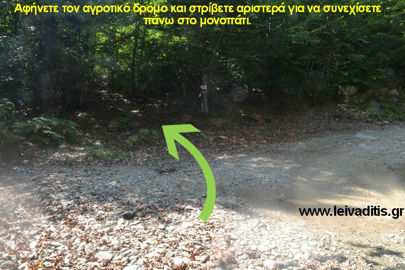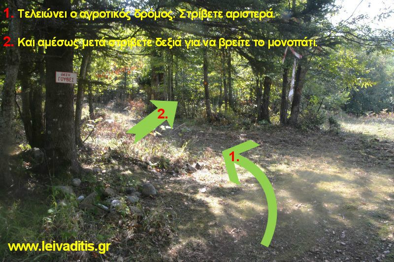 Με το που θα τελειώσει ο αγροτικός δρόμος (θέση Γούβες), περίπου 15 λεπτά από την ώρα που ξεκινήσατε, στρίβετε αριστερά (ευθεία υπάρχει ένα ξέφωτο) και αμέσως μετά δεξιά για να μπείτε στο μονοπάτι (Εικόνα 4)...
