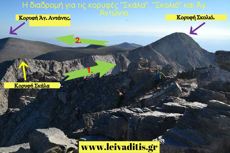 Αφού λοιπόν ξεκουραστείτε και πάρετε τις ανάσες που χάσατε στην προσπάθειά σας να ανέβετε την ανηφόρα (που σας φάνηκε παιχνιδάκι τελικά, έτσι δεν είναι?) συνεχίζετε για να φτάσετε στον δεύτερο από τους τρεις στόχους - κορυφές της σημερινής σας περιπέτειας. Να θυμάστε ότι για να πάτε στην κορυφή "Σκολιό" την δεύτερη πιο ψηλή κορυφή της χώρας μας μπορείτε από εκεί που είστε να συνεχίσετε πάνω στην κορυφογραμμή. Έτσι κι αλλιώς η κορυφή από εκεί που είστε φαίνεται (Εικόνα 9)...