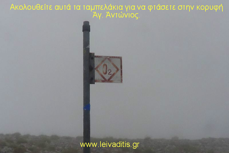 Ας γυρίσουμε όμως στην περιγραφή μας και στην συνέχιση της περιπέτειάς σας καθότι έχετε στο πρόγραμμα και τρίτη κορυφή να επισκεφθείτε, αυτήν του Άγιου Αντωνίου. Από το Σκολιό φαίνεται μονοπάτι που κατεβαίνει ευθεία κάτω το οποίο και ακολουθείται. Κάποια στιγμή θα εντοπίσετε σιδερένιες κολώνες με ένα ταμπελάκι με την ένδειξη Ο2. Αν είναι καλός ο καιρός η διαδρομή θα φαίνεται και δεν θα έχετε πρόβλημα. Αν έχει όμως ομίχλη ή βροχή καλό είναι να γνωρίζετε την ύπαρξη αυτών των μικρών σημαδιών οι οποίες θα σας οδηγήσουν στην κορυφή που επιθυμείτε (Εικόνα 12)...
