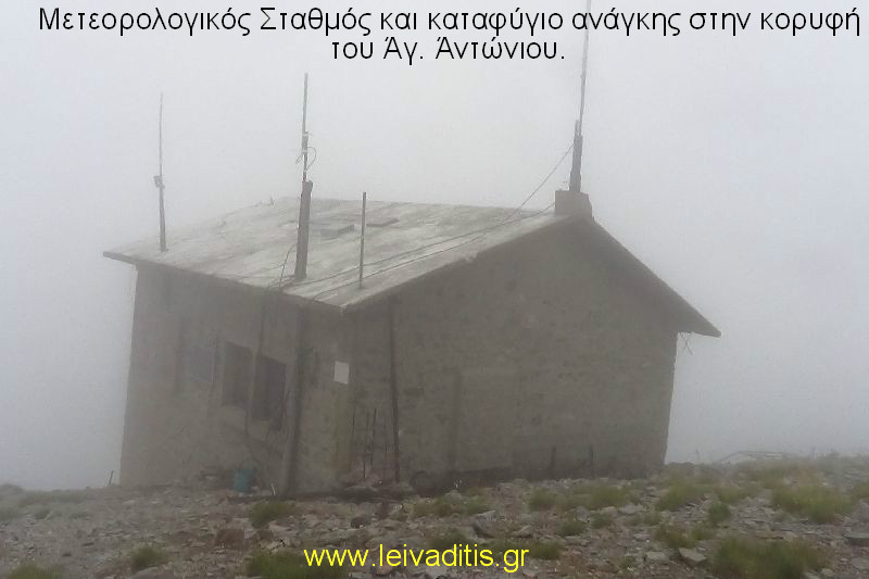 Απλώς για δική σας ενημέρωση να σας αναφέρουμε ότι στην κορυφή του Άγ. Αντωνίου υπάρχει κτήριο που χρησιμεύει και ως μετεωρολογικός σταθμός αλλά κυρίως ως καταφύγιο ανάγκης καθότι αν μπείτε μέσα και ανέβετε την σκάλα που υπάρχει ακριβώς στο σημείο όπου κάποτε ήταν η κύρια πόρτα του κτηρίου θα βρείτε όλα εκείνα τα απαραίτητα, για να την "βγάλετε καθαρή" σε μια ξαφνική εναλλαγή του καιρού (Εικόνα 16)...