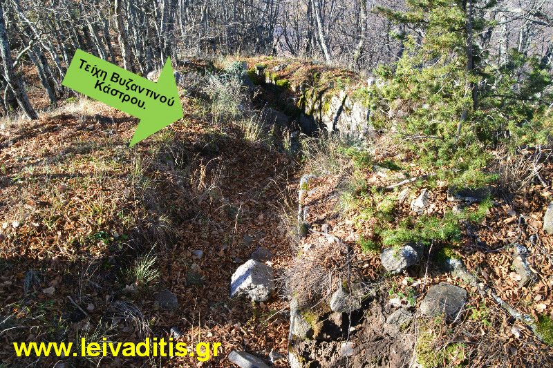 Μετά από 400 μέτρα θα δείτε στο δεξί σας χέρι μικρό μονοπάτι το οποίο αν ακολουθήσετε μετά από 100 μέτρα (συνολικά 20 λεπτά) θα σας βγάλει στα τείχη Βυζαντινού κάστρου (σε υψόμετρο 1.110 μέτρων) σημείο από το οποίο υπάρχει και φοβερή θέα.