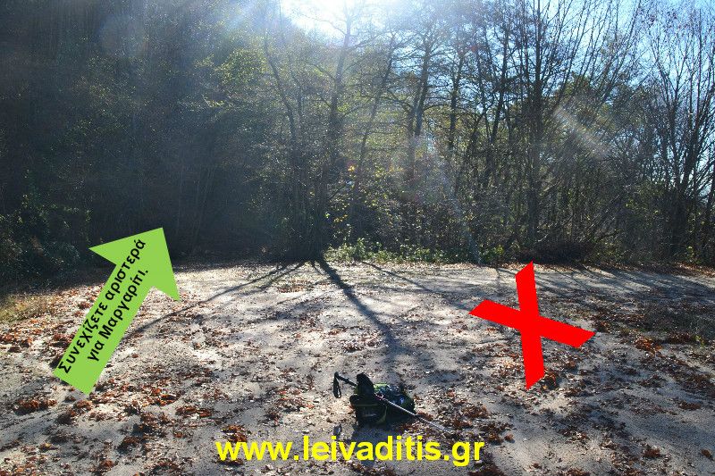 Συνεχίζετε την πορεία σας για άλλα 500 μέτρα και μετά από 15 λεπτά περίπου φτάνετε σε αγροτικό δρόμο και μάλιστα πάνω σε διασταύρωση. Συνεχίζετε ευθεία (δηλαδή ακολουθείτε το αριστερό σας χέρι) για να φτάσετε στον προορισμό σας που δεν είναι άλλος από αυτόν του Μαργαριτίου. Αν στρίψετε δεξιά θα φτάσετε στο Κ. Καρυόφυτο.