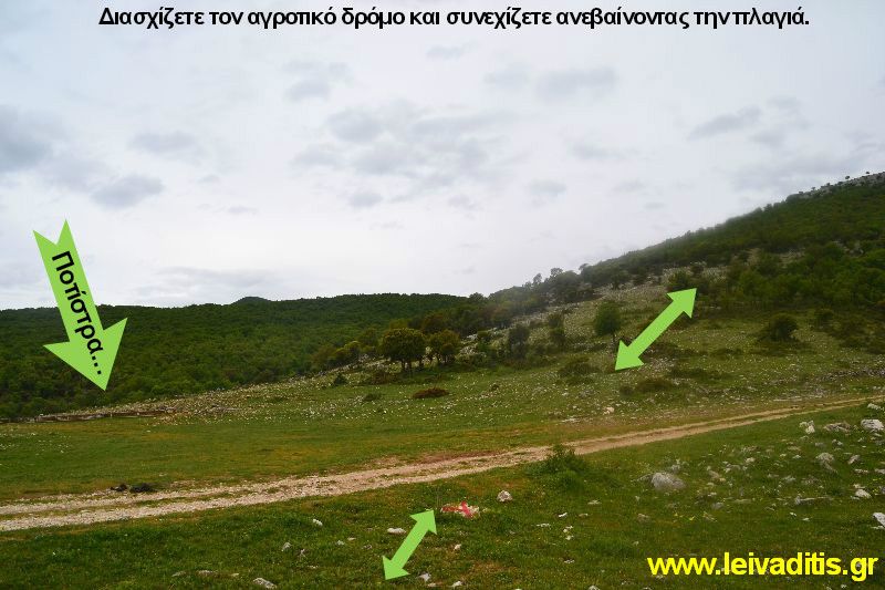 Αφού διασχίσετε όλον τον οικισμό του Μακάριου το μονοπάτι συνεχίζει μέσα σε δάσος βελανιδιάς για άλλο 1 χιλιόμετρο και 850 μέτρα. Θα χρειαστείτε δηλαδή άλλα 30 λεπτά (μισή ώρα) για να φτάσετε σε αγροτικό δρόμο (σε υψόμετρο 585 μέτρων), τον οποίο αφού διασχίσετε και περάσετε απέναντί του θα διαπιστώσετε την ύπαρξη ποτίστρας. Η διαδρομή συνεχίζει στην πλαγιά που υπάρχει από την ποτίστρα και πάνω και στην ουσία ξεκινάει η καλή κόψη - τραβέρσα της διαδρομής μέχρι την κορυφή (Εικόνα 10).