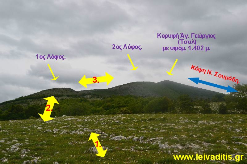 Κορυφή "Άγιος Γεώργιος" (Τσαλ) με υψόμ. 1.402 μ. (Κορυφή νο 21). Ανάβαση από την Εκκλησιαστική.