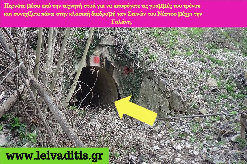 Αφού περάσετε λοιπόν από αυτό το τεχνικό, ακολουθείτε την κλασική διαδρομή των "Στενών του Νέστου" η οποία ύστερα 1 ώρα και 15 λεπτά και αφού περπατήσετε άλλα 4 χιλιόμετρα θα σας οδηγήσει στο πάρκινγκ της Γαλάνης σημείο δηλαδή που θα σας περιμένουν τα αυτοκίνητά σας ή το λεωφορείο με το οποίο έχετε έρθει στην περιοχή μας (Εικόνα 8).