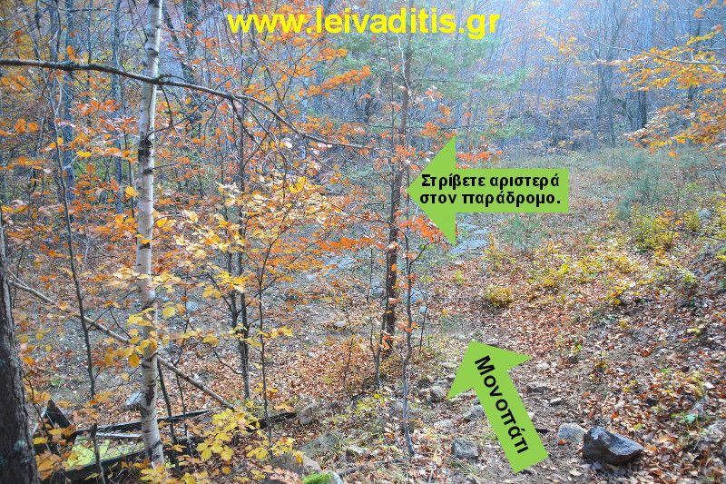 Αμέσως μετά τον Λειβαδίτη (8 χλμ) φτάνετε στο Δ.Χ. Ερυμάνθου (υψόμετρο 1.315μ.). Εκεί τελειώνει η άσφαλτος και ξεκινάει ένα σύμπλεγμα αγροτικών δρόμων που ο καθένας έχει και διαφορετικό προορισμό. Ξεκινάτε λοιπόν, το περπάτημά σας από τον τελευταίο αριστερά δρόμο.
