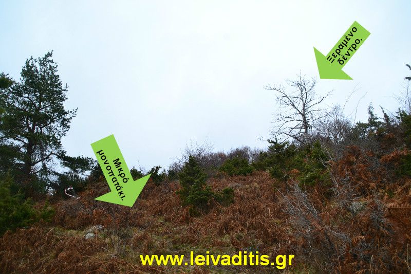 Μόλις αφήσετε τον χωματόδρομο και στρίψετε στην πλαγιά θα καταλάβετε τι σας περιμένει. Σιγά σιγά όμως και με ρυθμό θα τα καταφέρετε. Να θυμάστε με το αριστερό εισπνέετε (δέχεστε οξυγόνο) και με το δεξί εκπνέετε (βγάζετε οξυγόνο). Κανονίζετε το βάδισμά σας με βάση τις αναπνοές και έχετε πάντα αργές αναπνοές και επομένως αργό βάδισμα. Έχοντας αυτή την οδηγία στο μυαλό σας θα μπορέσετε να ανέβετε αυτήν την επίπονη πλαγιά η οποία θα σας απασχολήσει για την επόμενη ώρα και 5 λεπτά περίπου και το τέλος της θα σας βρει να έχετε περπατήσει 1 χιλιόμετρο και 800 μέτρα επιπλέον και να έχετε φτάσει σε υψόμετρο 1.530 μέτρων. Λίγο πριν φτάσετε θα δείτε ένα χαρακτηριστικό καμμένο από τους κεραυνούς δέντρο και λίγο πριν το φτάσετε θα δείτε ένα μικρό μονοπάτι που φεύγει ευθεία στα αριστερά σας (επιτέλους βρήκατε ένα μονοπάτι που δεν είναι ανηφορικό).