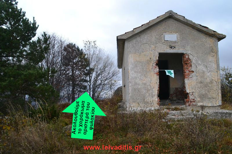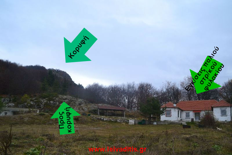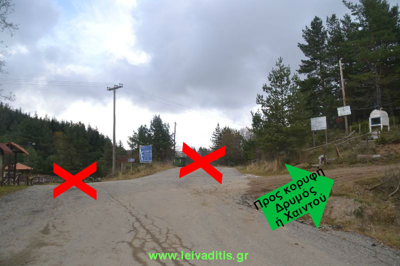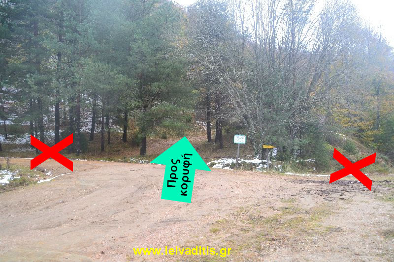 Θα δείτε μπροστά σας μια μπάρα κατεβασμένη και στο βάθος τις παλιές εγκαταστάσεις ενός στρατοπέδου με ένα εκκλησάκι στα αριστερά σας, σε υψόμετρο 1.500 μέτρων. Στο δεξί σας χέρι θα δείτε κιόσκι, πίσω από το οποίο ξεκινάει το μονοπάτι για την κορυφή.