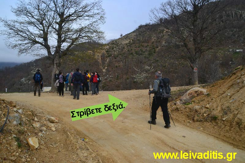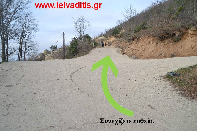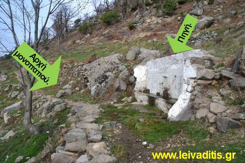 Συνεχίζετε πάνω στον αγροτικό δρόμο για άλλα 700 μέτρα και θα δείτε αριστερά σας βρύση με τρεχούμενο πόσιμο νερό, σημείο από το οποίο ξεκινάει το μονοπάτι σε υψόμετρο 890 μέτρων.