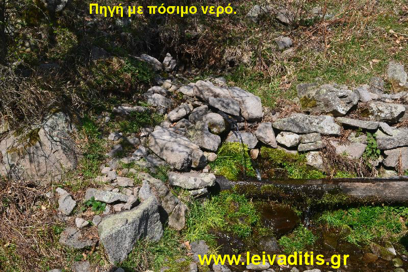 Προηγουμένως σας είχαμε αναφέρει ότι τρεχούμενο νερό δεν θα βρείτε παρά όταν κατεβαίνετε από την κορυφή. Πράγματι τα πρώτα λάστιχα που ετοίμασαν οι τσοπάνοι για να ποτίζουν τα ζώα τους θα τα βρείτε 1,5 ώρα μετά την κορυφή και αφού έχετε περπατήσει άλλα 2 χιλιόμετρα δηλαδή όταν θα φτάσετε συνολικά στα 12 και σε υψόμετρο 1.090 μέτρων.