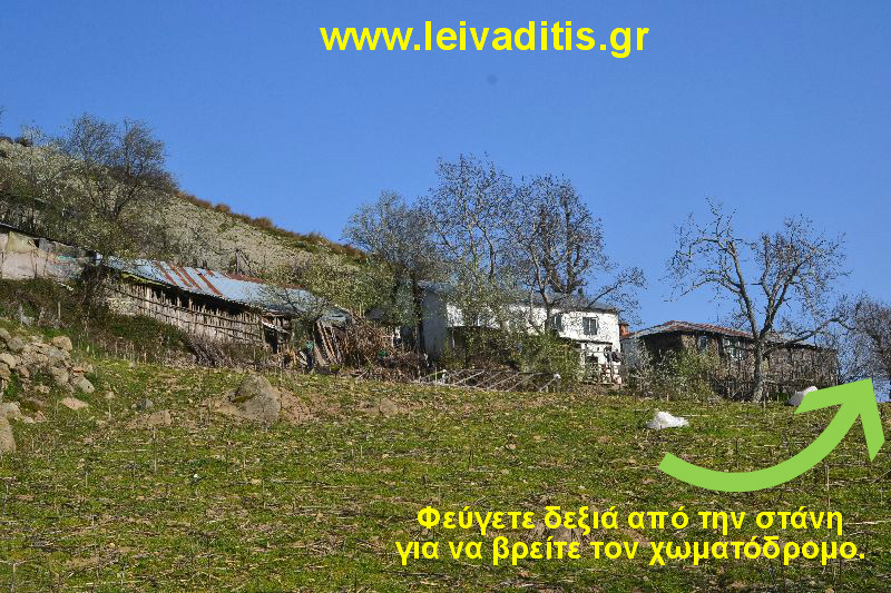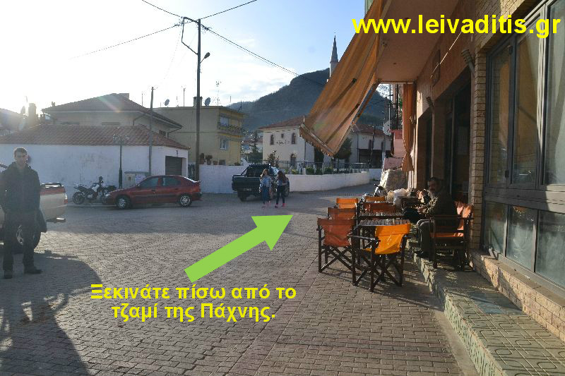Στο κέντρο του χωριού αφήνετε το αυτοκινητό σας και ακολουθείτε τον δρόμο που περνάει πίσω από το τζαμί και σας οδηγεί έξω από το χωριό. Αφού περπατήσετε 1 χιλιόμετρο και 200 μέτρα φτάνετε σε διασταύρωση 3 δρόμων. Ακολουθείτε τον μεσαίο τσιμεντένιο δρόμο.