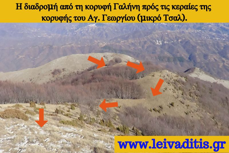 Απομένουν τα τελευταία 900 μέτρα που χρειάζεται να περπατήσετε σε 25 λεπτά περίπου προκειμένου να φτάσετε στη κορυφή "Γαλήνη" σε υψόμετρο 1.145 μέτρων. Από την ώρα που ξεκινήσατε να περπατάτε από τον οικισμό του Λυκοδρομίου, έχετε διανύσει 5 χιλιόμετρα και 100 μέτρα σε 2 ώρες και 50 λεπτά και από το υψόμετρο των 400 μέτρων έχετε φτάσει στα 1.145. Από δω και μετά, αν είναι καθαρός ο καιρός, βλέπετε τις κεραίες που είναι τοθετημένες στο "Μικρό Τσαλ" και που αποτελεί τον επόμενο στόχο σας (Εικόνα 9)...