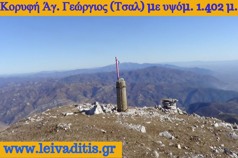 Απολαύστε κάθε στιγμή όταν βρεθείτε στην κορυφή του Αγίου Γεωργίου (Τσαλ). Έχετε κουραστεί πραγματικά για να τα καταφέρετε (αφού έχετε περπατήσει 8 χιλιόμετρα με 1.040 μέτρα υψομετρικά σε 4 ώρες και 15 λεπτά) και η θέα από εκεί επάνω ισοδυναμεί με όλα τα "λεφτά". Να έχετε οπωσδήποτε μαζί σας μπουφάν, κασκόλ και γάντια (για τους χειμερινούς μήνες) και να θυμάστε ότι, ό,τι εποχή και να ανεβείτε η κορυφή έχει πάντα αέρα. Λίγο πιο κάτω και αριστερά από το ορόσημο υπάρχει η λεγόμενη "γκαρσονιέρα" που κατασκευάστηκε από τους λάτρεις της κορυφής (όπως ο κύριος Σουμάδης) μόνο και μόνο για προστασία από τον μόνιμο αέρα (Εικόνα 14)...
