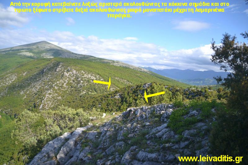 Από την ώρα που θα ξεκινήσετε το περπάτημά σας μέχρι την πρώτη κορυφή (προκορφή) θα χρειαστεί να περπατήσετε 1 χιλιόμετρο και 350 μέτρα σε περίπου 40 λεπτά και θα φτάσετε το υψόμετρο των 540 μέτρων. Από αυτό το σημείο και μετά η διαδρομή για την κορυφή που σας ενδιαφέρει είναι εμφανέστατη όπως και η ίδια η κορυφή (Εικόνα 8)...