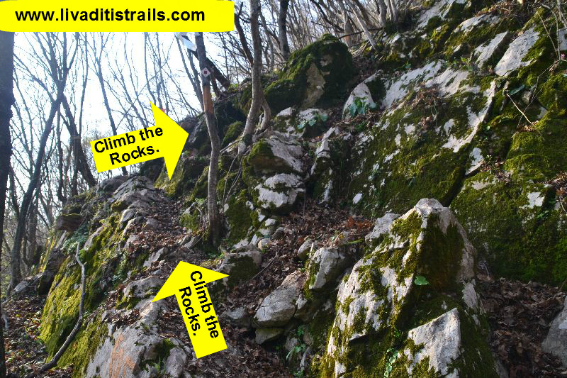 You will be walking through an oak forest feeling carefree and thinking how beautiful and easy the route will be if it continues like this and that in the end you will manage to cross it. No way!! Suddenly, you will see from far away a rock in your way, where the signs lead you, with no possibility of going right or left, only up. It’s like it had been planted there and as the signs indicate you will have to climb it. Hang in there… No more talking or joking… You had better start thinking about the tsipouro we mentioned earlier and remember that every step you take brings you closer to achieve your first MANLY CROSSING. Remember what we have just told you (Picture 4)...