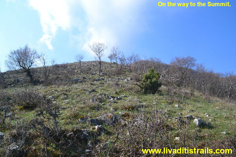 For the next hour, the only thing you need to be concerned about is the gradient. The route you are walking on is well-signed by Nikos Soumadis with red paint on trees and rocks, while on the branches there are orange clothes placed a few months earlier (January 2016) by Dimosthenis Athanasiadis and his friends (Picture 7)...