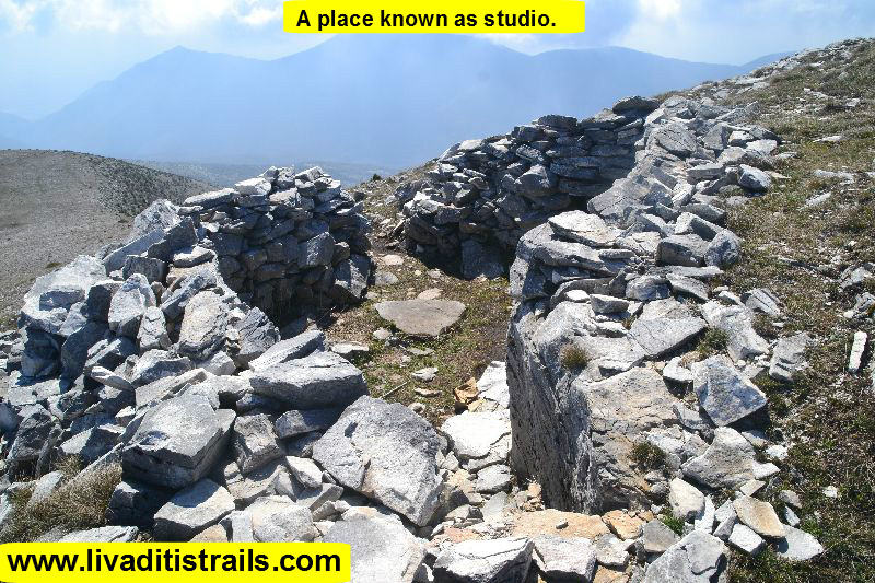 A little further down from the summit you can find a place known as studio, where you can be protected by the wind or have the chance to change your clothes, drink some coffee or gain your strength back by eating some of the food you packed (Picture 13)...