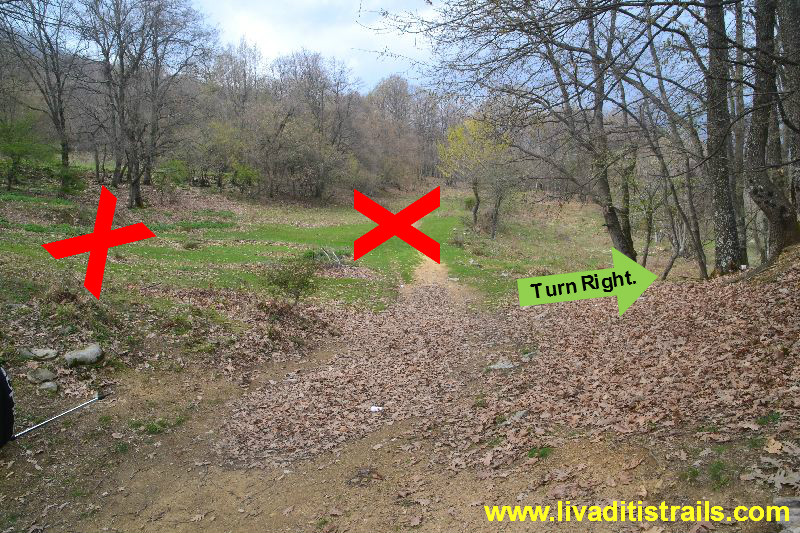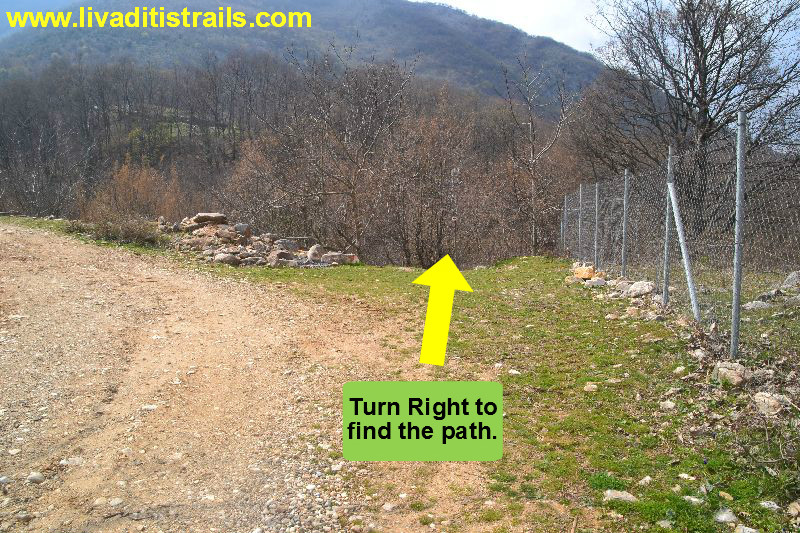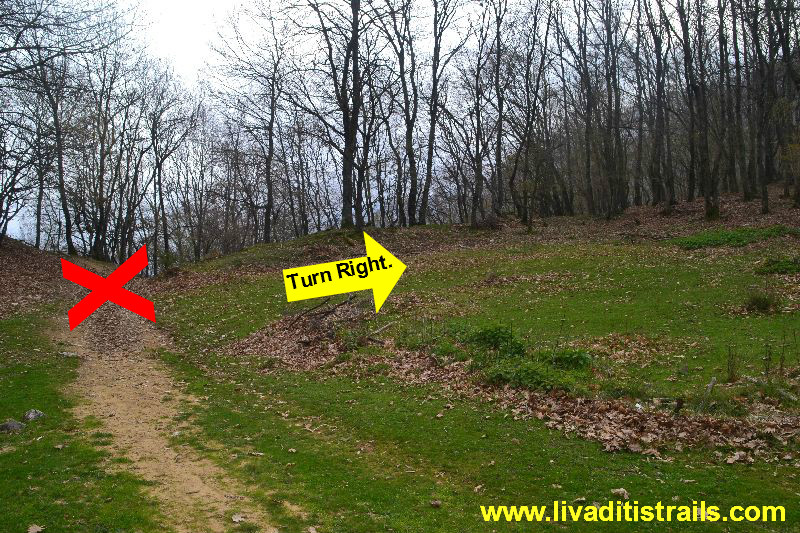 For the first 300 meters, you will walk on the old dirt road, which is nearly closed and looks like a path. After 10 minutes, you will reach a crossroad of paths at an altitude of 415 meters; the left route leads back to Gerakas, the route straight ahead takes you to the settlement of Pillima while the right route, which is marked by orange clothes hanged on trees starting from this point, is the one you should follow (Picture 3)...