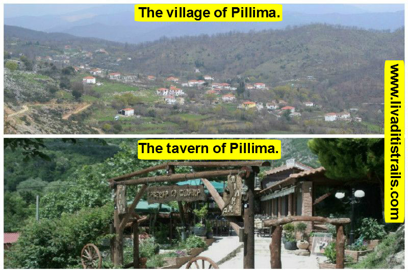 Continue walking on the country road for another 3 km and 100 meters for about 50 minutes and you will arrive at the settlement of Pillima at an altitude of 315 meters. You have now crossed the largest part of the trail. We recommend you a little stop at the tavern of the village, named “Pillima” (tel. number 2541024242) either for some coffee or juice or to finish your expedition and get some rest eating and enjoying the wonderful cuisine (Picture 16)...