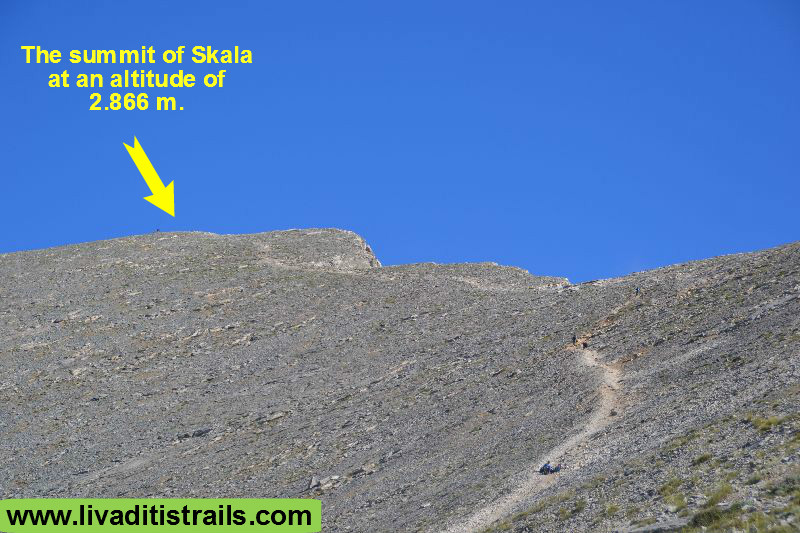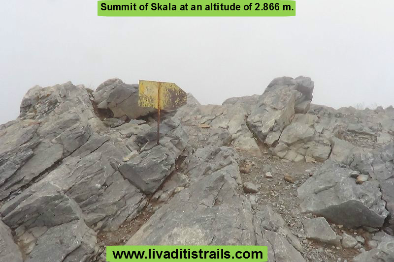 The view seen in a few minutes, after reaching “Skala” summit at an altitude of 2.866 meters, will be striking. From the crossroad, you will have to walk 55 minutes more to cross the last 1,4 km to the summit. There is no landmark, because it was slowly torn apart by the wind (Image 8)…
