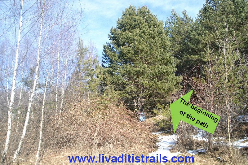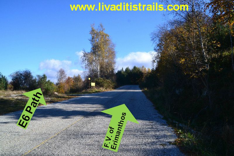 You follow the asphalt driveway that goes to F.V. of Erimanthos for 1 km and 200 meters. On your left, you will see a small yellow sign, which says "No Hunting" and you will find that there is a small vacant lot (at an altitude of 1.205 meters).