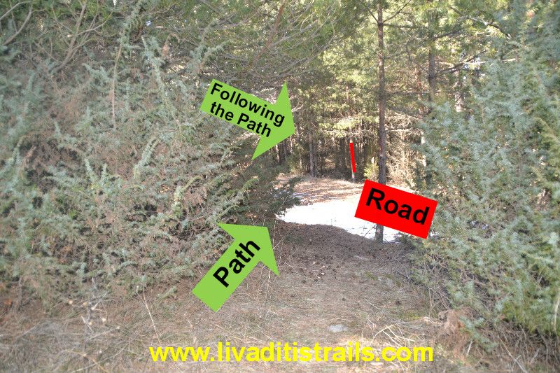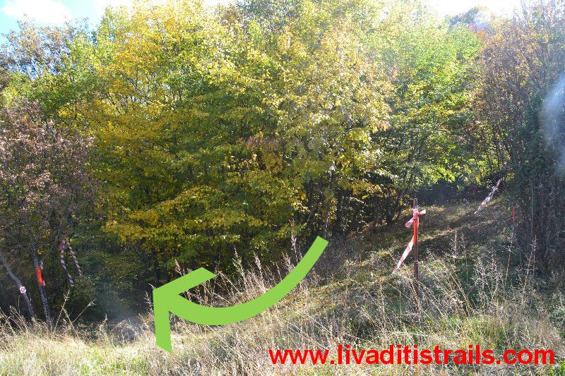 You then follow the signs and the red cloths that there on the rocks and trees for another 380 meters (1.860 meters from the beginning) or a ten minute walk, until you find a glade and on your right there is an iron pole with a red cloth, at an altitude of 1.010 meters.