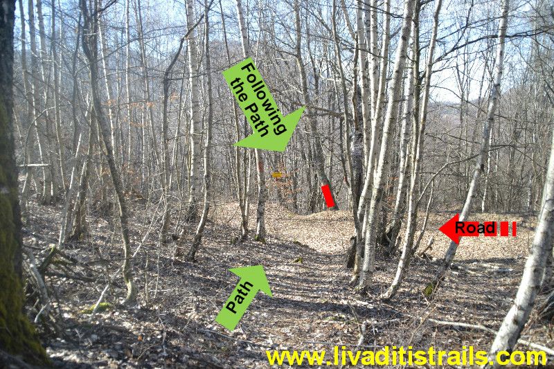 Far right into the vacant lot, you will find a tree with a red cloth and a red and white sign. The 3 km long and 410 meters trail with a duration of 1 hour and 20 minutes is very relaxed walking and is also very well signposted. However, you must follow the specific red and white signs or the red clothes, so as not to get lost (do not follow the orange signs or the phosphorescent red cardboards on the trees because you will reach Trahoni, in Drama).